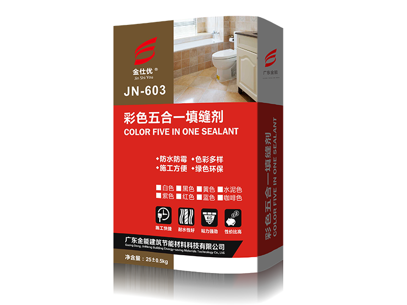 JN-603彩色五合一填縫劑是一種具有粘貼、填縫、防水、防開裂、防黴功能的彩色填縫劑。